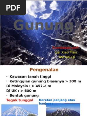 Jamal Mohamad 71 yang juga penduduk asal Kampung Gapis. Kemuncak tertinggi ialah Gunung Murud 2 425 m iaitu gunung tertinggi di Sarawak. Gunung biasanya lebih tinggi dan curam berbanding bukitGunung dan banjaran gunung terbentuk disebabkan pergerakan kerak bumi yang bertembung.